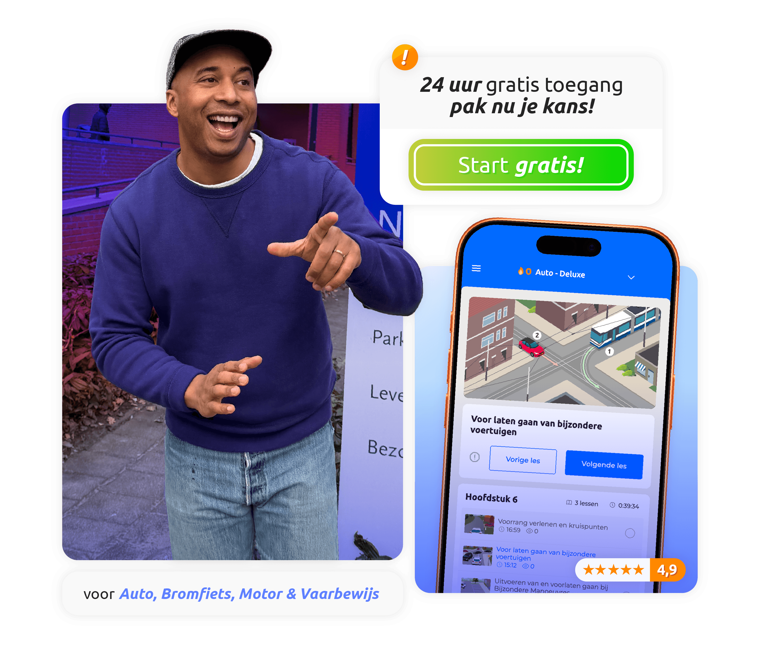 Van verkeersregels tot vragen en antwoorden—we behandelen alles! Alle kennis wordt uitgelegd in duidelijke, hoogwaardige video's. Elk type vraag komt voorbij: meerkeuzevragen, sleepvragen, open vragen en de nieuwste animatievragen.