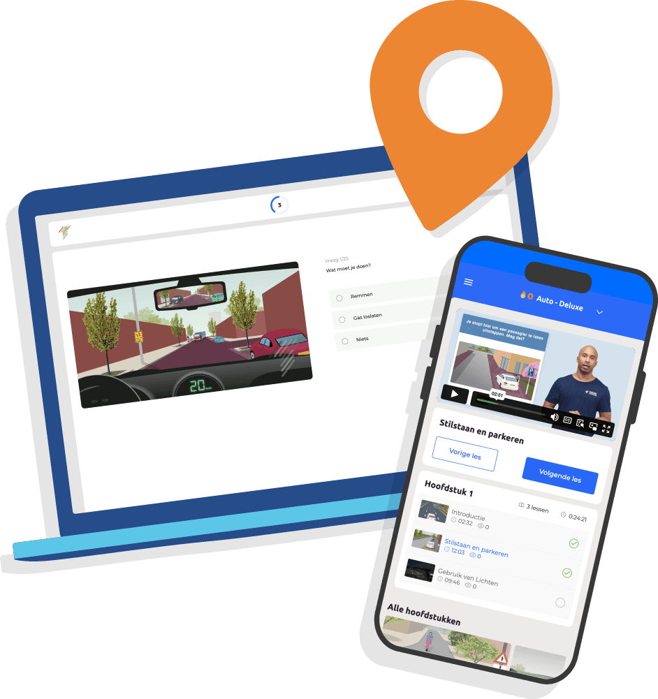 Van verkeersregels tot vragen en antwoorden—we behandelen alles! Alle kennis wordt uitgelegd in duidelijke, hoogwaardige video's. Elk type vraag komt voorbij: meerkeuzevragen, sleepvragen, open vragen en de nieuwste animatievragen.